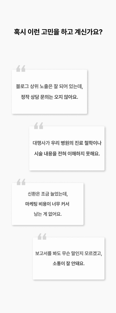 지금 문의 하시면 병원 맞춤 분석 리포트를 무료로 드립니다.